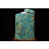Luxusní porcelánová dóza s motivem tance císařských draků. Bohatá tyrkysová glazura a precizní malba činí z této nádoby skutečný sběratelský skvost.